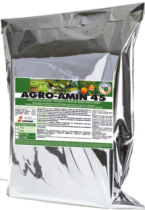 AGRO-AMIN 50 es un bioestimulante a base de aminoácidos libres y péptidos de bajo peso molecular, obtenidos por hidrólisis de proteínas, con una alta asimilación por la planta, tanto en aplicación foliar como radicular. Esta combinacion ayuda a las plantas a superar situaciones de stress tanto del transplante como de condiciones adversas como Sequías, salinidad, etc...