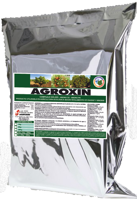 AGROXIN es un formulado fosfo-potásico sólido concentrado, altamente asimilable por la planta tanto si se aplica vía foliar, radicular o pintado al tronco. El producto presenta movilidad (xilema-floema) tanto ascendente como descendente que favorece su rápida incorporación en los tejidos de la planta.