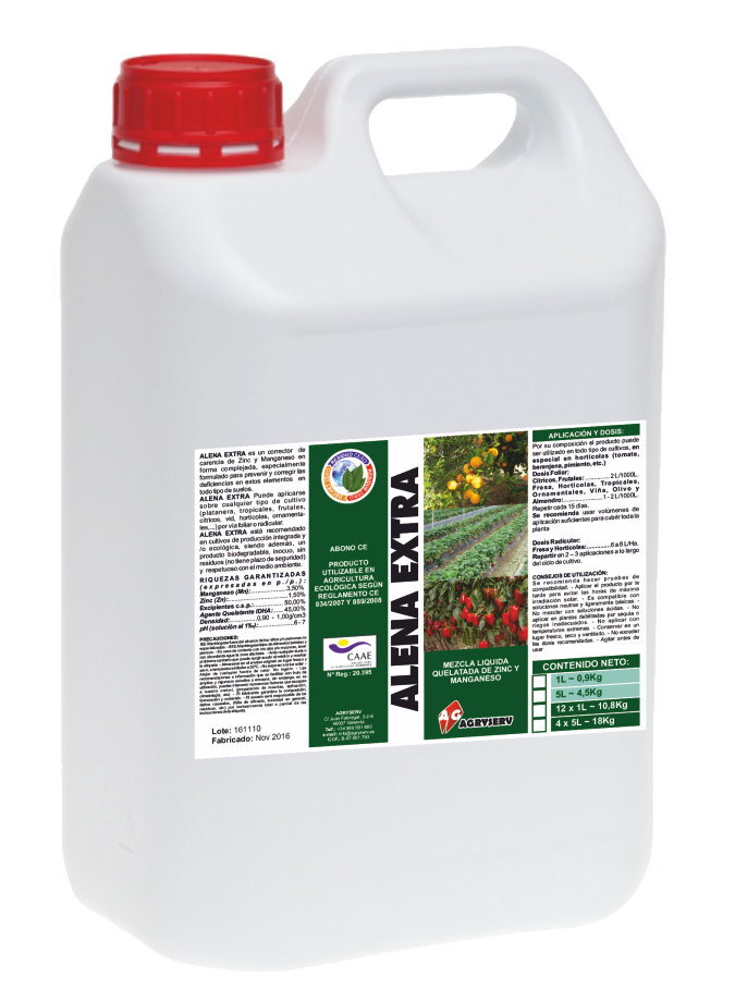 Es una mezcla líquida con Zinc y Manganeso Quelatado con extractos vegetales, formulada para fortalecer la planta con esos microelementos y acondicionarla frente al ataque de ciertos agentes abióticos.