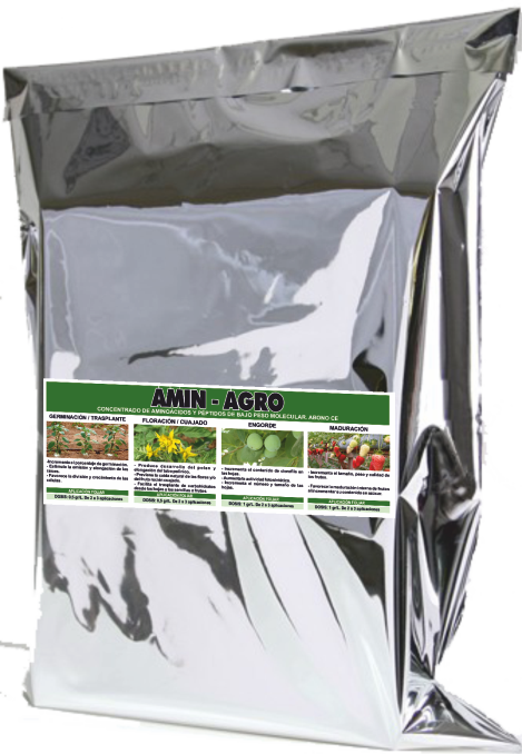 AMIN-AGRO es un concentrado a base de aminoácidos, preparado para la aplicación en formulaciones fertilizantes NPK, aminoácidos, algas, etc..., foliares y radiculares, destinados a cultivos que exijan un complemento nutritivo ante la falta de floración o cuajado.
