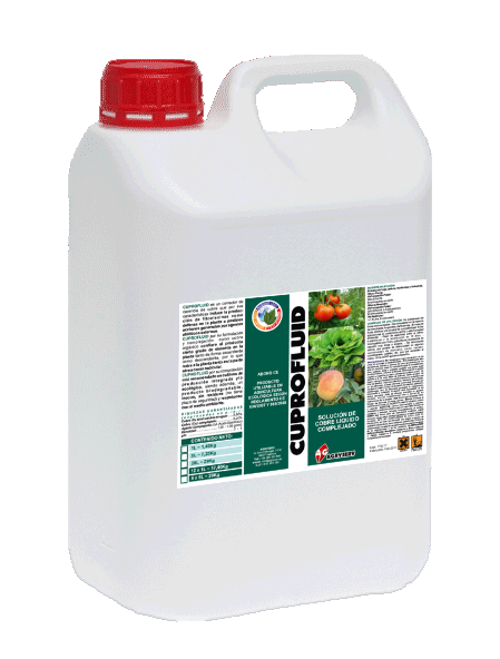 CUPROFLUID es una solución líquida de Cobre complejado, diseñado como corrector de carencias de dicho elemento. Por sus características induce la producción de fitoalexinas como defensa en la planta a posibles acciones generadas por agentes abióticos externos.