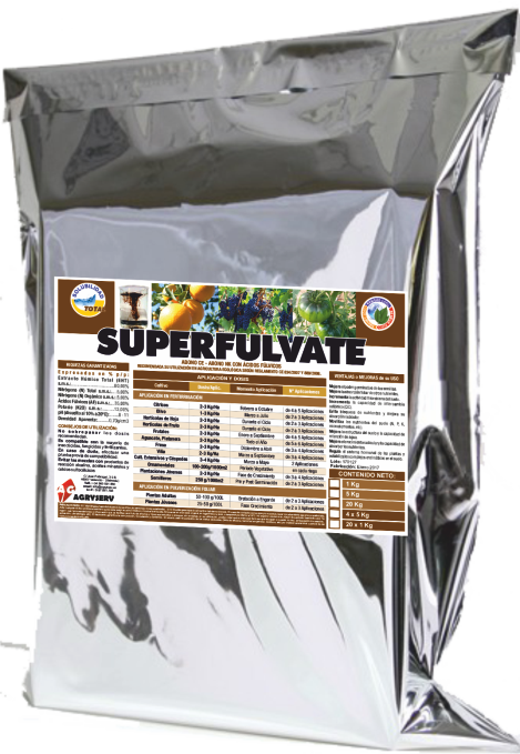 SUPERFULVATE es un producto sólido a base de Nitrógeno y Potasio con Ácidos Fúlvicos. Su riqueza en Ácidos Fúlvicos, junto con el mínimo contenido en sólidos insolubles que presenta, lo hace idóneo para su utilización en riego localizado.